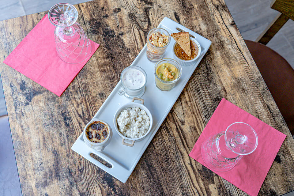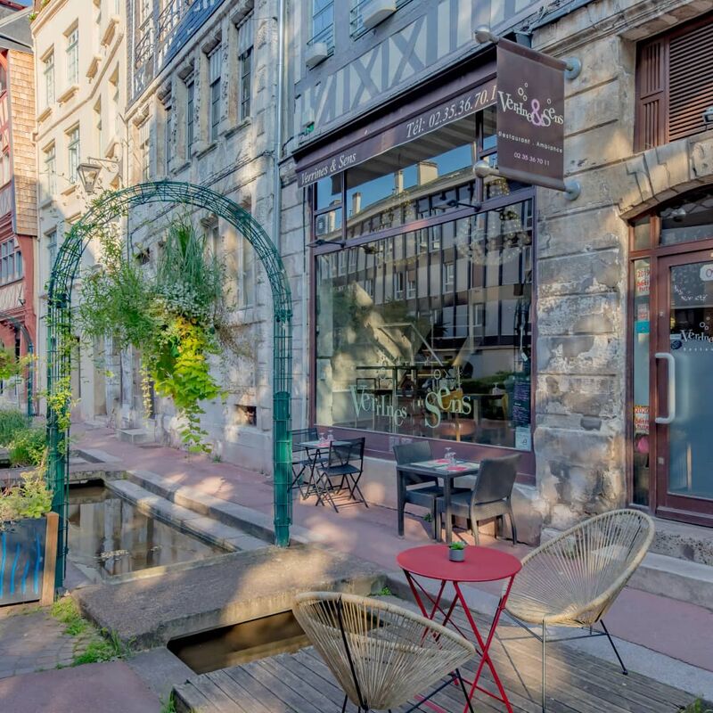 Verrines et Sens situé en plein cœur du quartier historique de Rouen, qui marie harmonieusement vieilles pierres et décoration moderne. Vous pourrez aussi profiter aux beaux jours d’une belle terrasse calme et ensoleillée le long du Robec. Le menu composé de verrines (salées et sucrées au choix) est un véritable défilé de couleurs et de saveurs. Ici luxure, orgueil et gourmandise sont des péchés à ne pas refréner, bien au contraire..